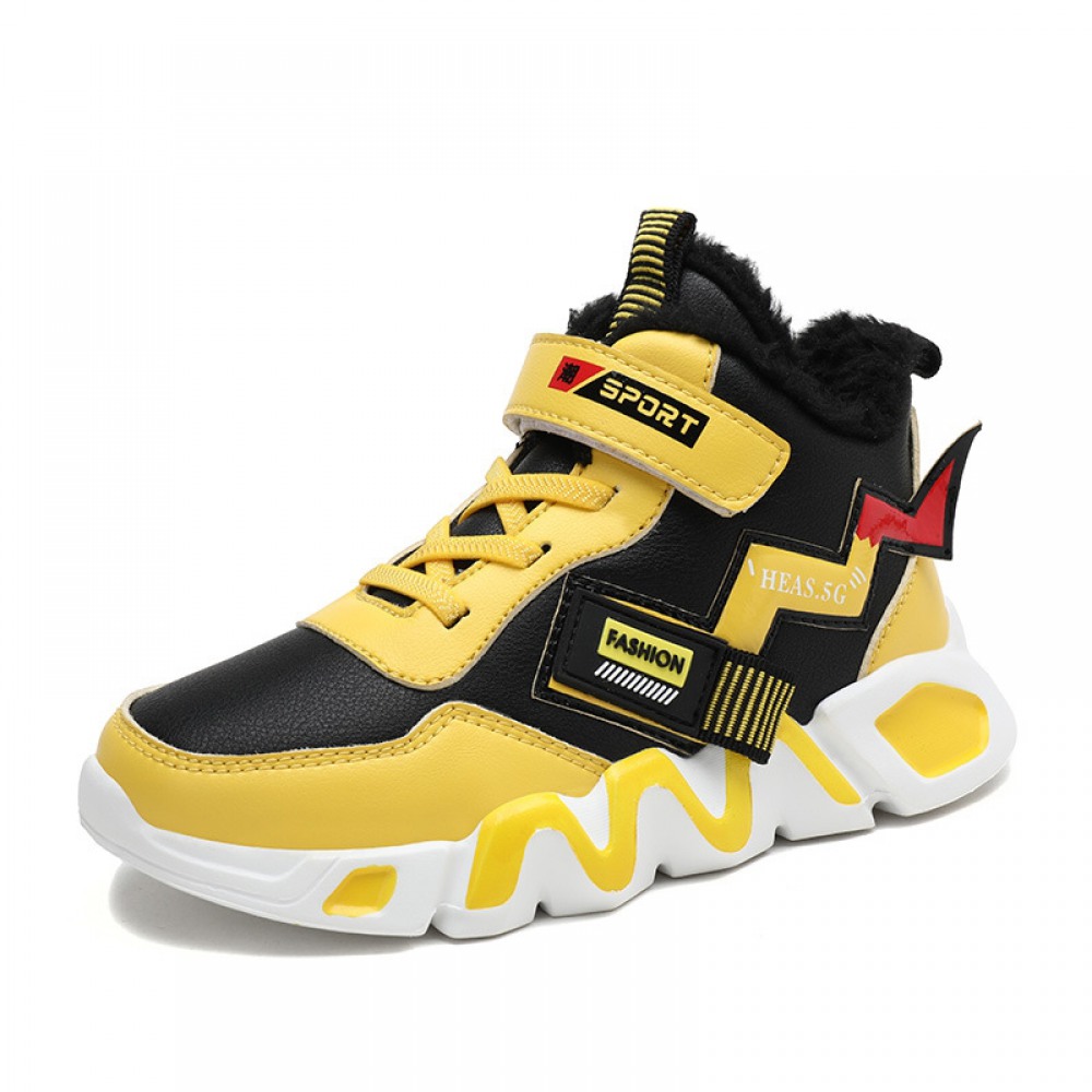 Children's Autumn and Winter New Two Cotton Plus Velvet Sports Shoes Leather Velcro Shoes