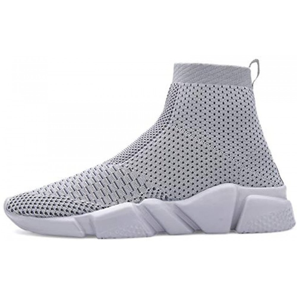 Men's Breathable Knit Slip On Sneakers Lightweight Athletic Casual Sports Shoes High Top All Grey
