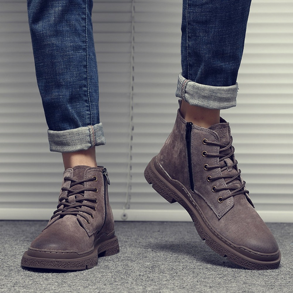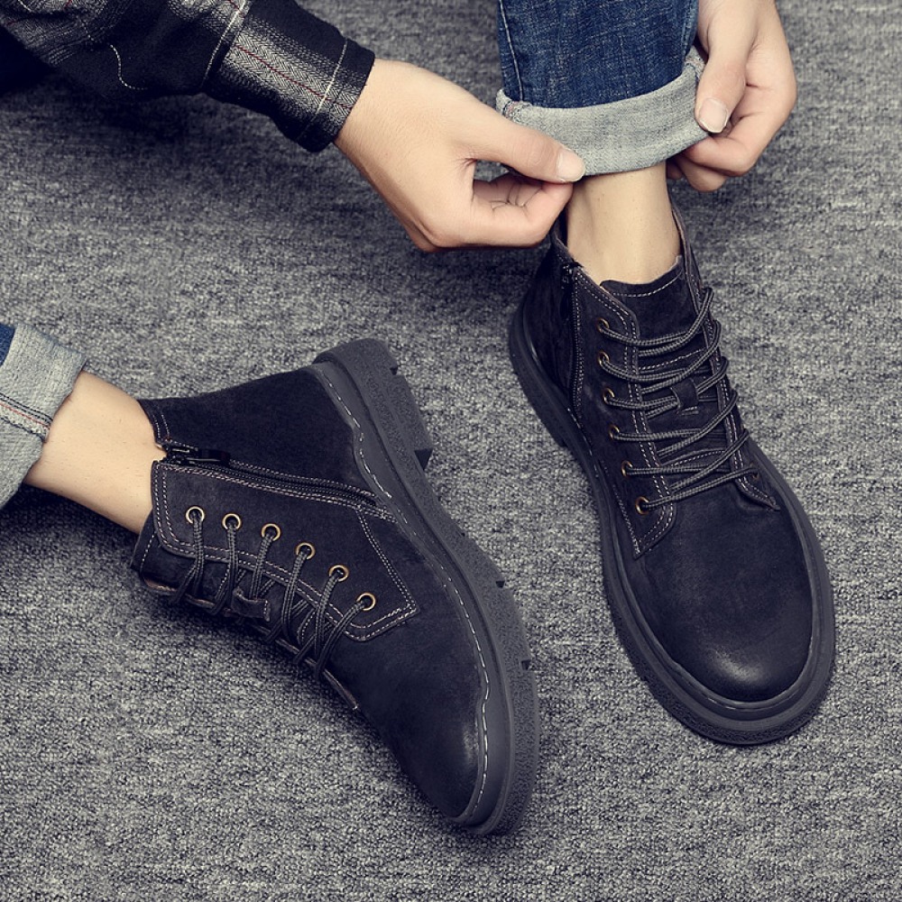 Men's British Style Tooling Boots Trend High-Top Shoes Casual Breathable Short Martin Boots