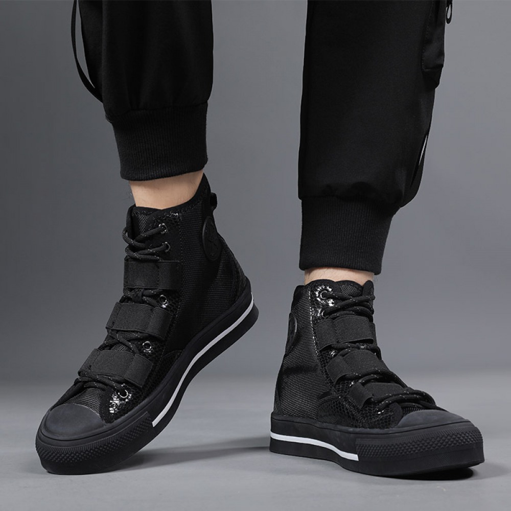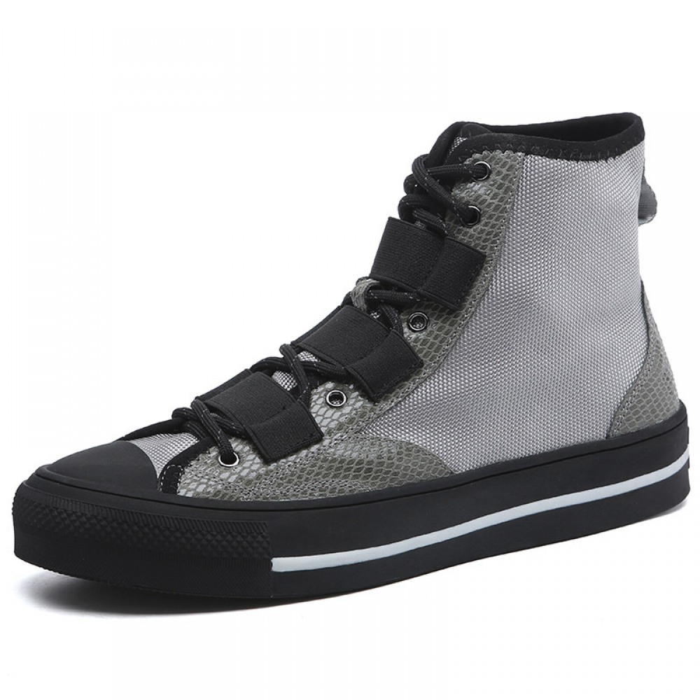 Men's Round Toe Fabric Stitching Casual Canvas Flat Heel Shoes
