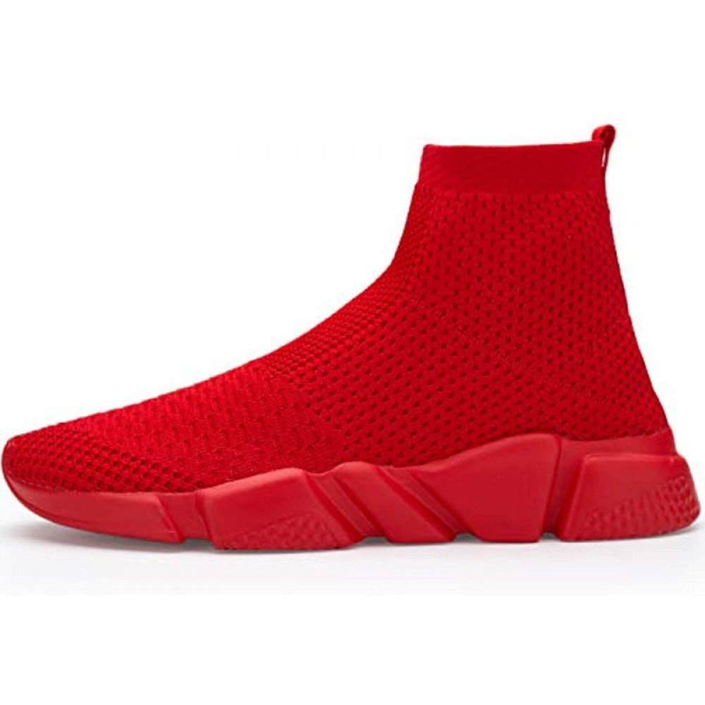 Men's Running Shoes Breathable Knit Slip On Sneakers Lightweight Athletic Casual Sports Shoes All Red